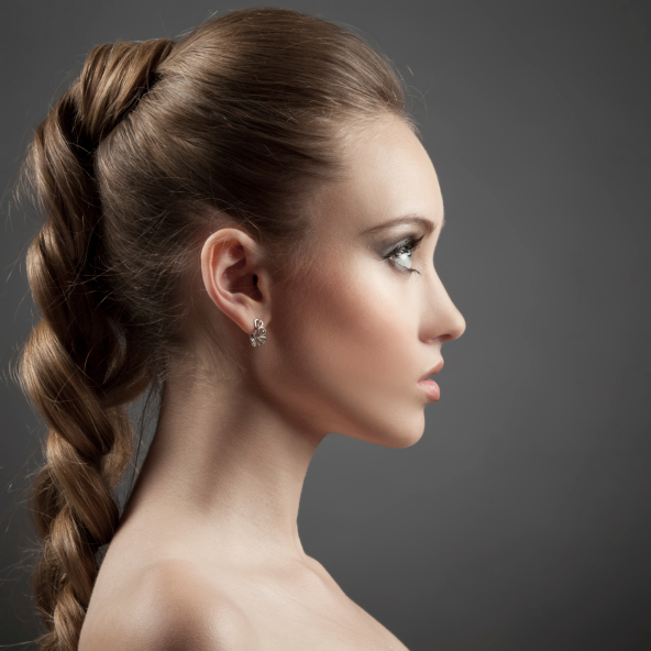 Per un look più elegante, legate i capelli lisci in una coda di cavallo alta. Avvolgete una ciocca intorno all’elastico per nasconderlo e con il resto della chioma create un torciglione, che fisserete con un elastico invisibile.