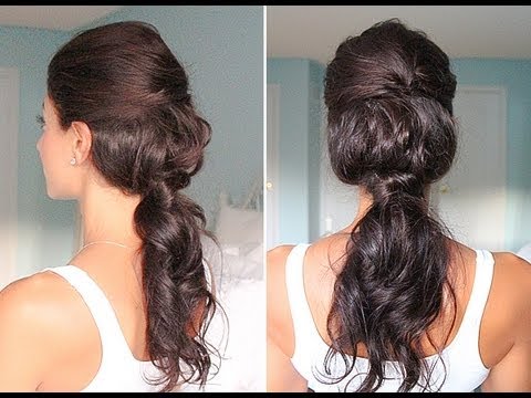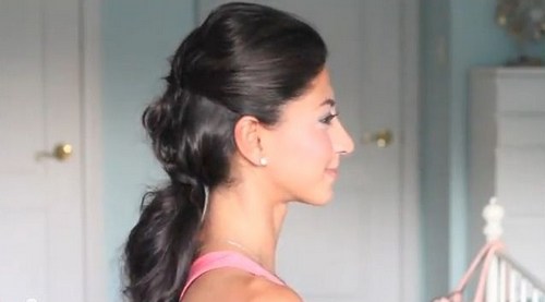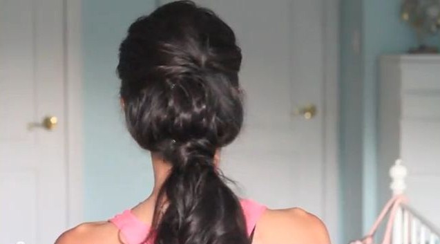 Step 2. Occupatevi adesso dei capelli che restano sulle spalle. Legateli morbidamente in una coda di cavallo classica. Fermate la coda con un piccolo elastico e poi tirate leggermente su i capelli per creare un leggero effetto volume.