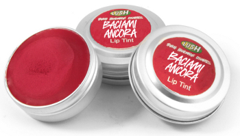 Anche da Lush dei gustosissimi Lip Tint: Baciami Ancora, rosso-rosato, Conquistami, rosso, e Tentami, color cioccolato, con un mix di burri ed olii per nutrire a fondo le labbra e renderle morbide e lisce.