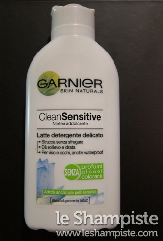 Primo step, il Detergente viso Garnier CleanSensitive: specifico per la pelle sensibile e facilmente irritabile, si può utilizzare anche per gli occhi. Elimina completamente ogni traccia di trucco, non secca la pelle e non è aggressivo sugli occhi. Io lo uso così: verso una noce abbondante di prodotto sul palmo della mano, massaggio il detergente sul viso insistendo delicatamente sugli occhi e poi elimino tutto con un dischetto di cotone.