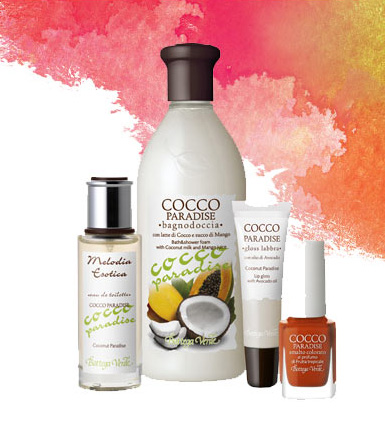 Con la Cocco Paradise Bottega Verde propone innanzitutto un nuovo Bagnodoccia con Latte di Cocco e Succo di Mango ricco di vitamine e minerali per rendere la pelle morbida e setosa, la schiuma soffice inoltre diffonde una sensuale ed irresistibile fragranza tropicale.