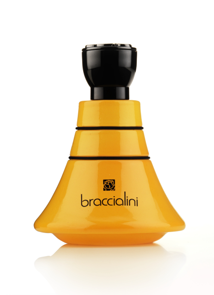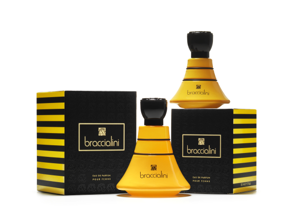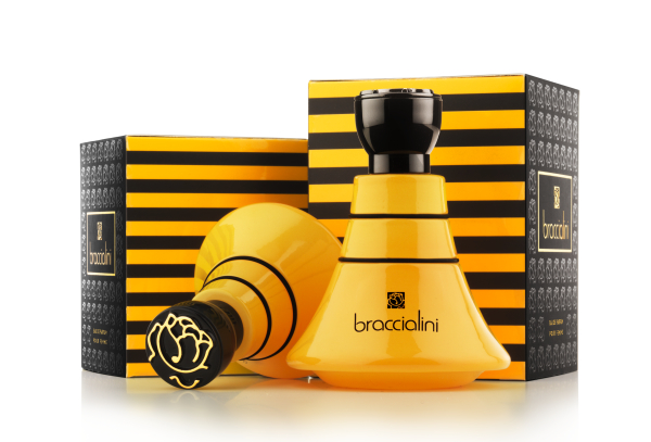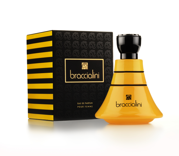 Presentato presso lo showroom di Milano in Corso Venezia, la nuova Eau de Parfum Braccialini colpisce al primo sguardo, grazie allo strepitoso packaging: decisa e caratterizzante la scelta dei colori giallo e nero; il flacone sinuoso ricorda una gonna e sulla sommità del tappo si riconosce l’inconfondibile logo della Maison: la rosa simbolo della femminilità.
