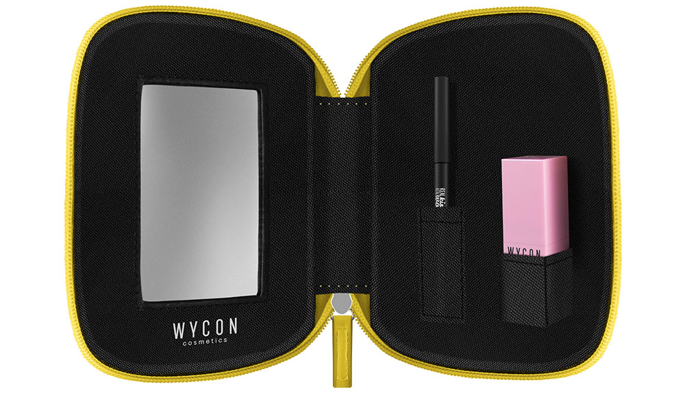 I prodotti sono racchiusi in una pochette in colore giallo fluo, tinta accesa ed energica ispirata alla mimosa, fiore simbolo della festa, sulla cui parte frontale appare un disegno pop revival ispirato allo storico manifesto di J. Miller che ritrae Rosie The Riveter, icona delle femministe di tutto il mondo e del percorso storico dell’emancipazione femminile. All’interno della pochette c’è anche un pratico specchietto per il make-up che rende questo kit l’idea perfetta da regalare per chivuole tenere sempre in borsetta i rossetti, per un ritocco lampo in ogni occasione.