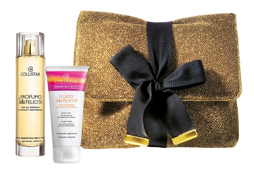 - Benessere della Felicità (€ 39,50): Profumo della Felicità 100 ml, Fluido della Felicità 50 ml, tutto in Pochette Gioiello.