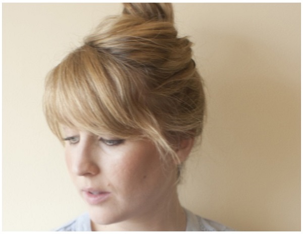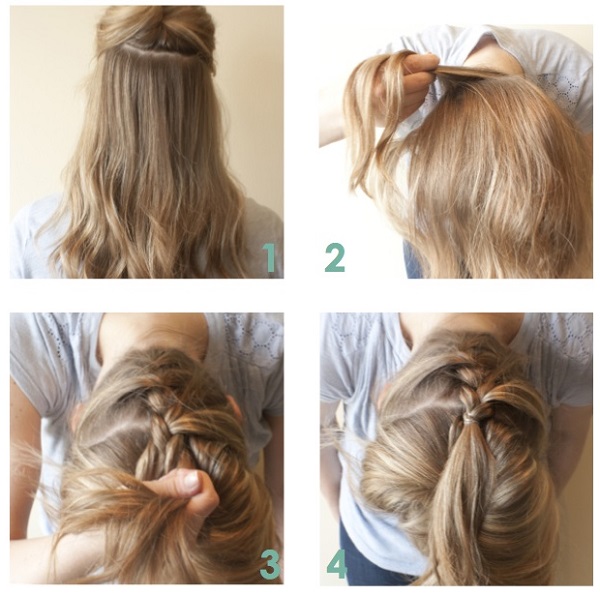 Step 3. Mettete insieme le lunghezze che avevate legato e quelle della treccia e avvolgete in modo da creare uno chignon spettinato. Spruzzate un velo di lacca e la pettinatura è pronta.