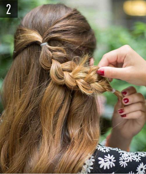 Step 1. Cominciate pettinando i capelli e realizzando una mezza coda abbastanza corposa che legherete al retro della testa con un mini elastico.