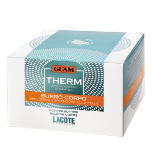 Per le pelli più esigenti il THERM Burro Corpo che contiene estratti di Aghe Guam, un complesso di pregiate cere naturali e Acqua marina di Raiatea. Svolge la triplice azione di nutrire, elasticizzare e rimineralizzare la pelle per prevenire la formazione di cedimenti cutanei.