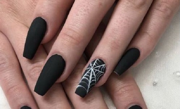 Le ragnatele rappresentano un classico di Halloween. Non sbagliamo quindi se decidiamo di affidarci a questo elemento decorativo per le nostre unghie. Un fondo nero con disegni bianchi è la cosa più semplice da riprodurre per tutti. A prescindere dalla lunghezza delle nostre unghie.