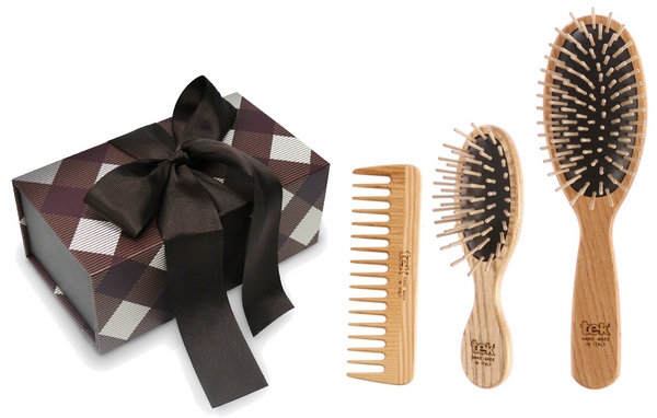 4) Spazzole per capelli: vi suggeriamo il kit di spazzole Tek realizzate in legno di frassino. Il kit comprende una spazzola ovale grande e un set da borsetta composto da una spazzola mini e da un pettine a denti larghi. Prezzo: 49,50 euro.