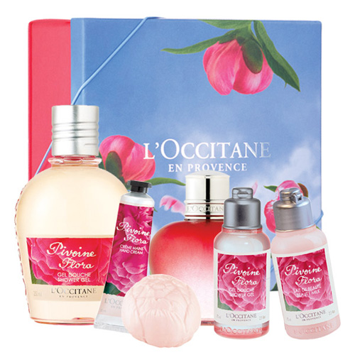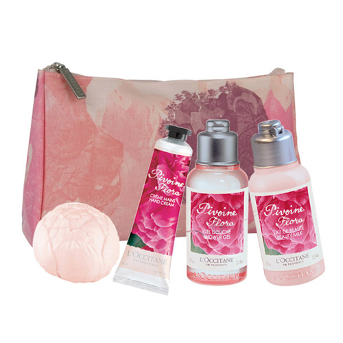 Comprende i prodotti della nuova linea profumata Peonia Flora in versione full size e in versione da viaggio (65 €).