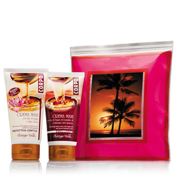 Per le fanatiche della pedicure Piedi in Festa, confezione con astuccio in pvc, lima piedi per eliminare le callosità e l’Impacco nutriente con Mentolo e burro di Karitè, per prevenire e contrastare la secchezza. Per chi ama invece prendersi cura delle mani, il cofanetto Mani Fatate contenente un astuccio in pvc e due creme: Crema mani con olio di Argan e latte di Iris e Crema mani nutriente con olio di Argan ed estratto di Gelsomino del deserto.