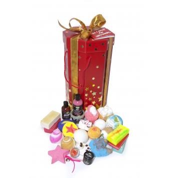 All I Want For Christmas/5 Stelle (148,50 euro). Per una persona speciale questo pacco contiene solo edizioni limitate Lush: Fate Voi, gel doccia, La Magia delle Spezie, ballistica, Infuocami, balsamo labbra, Fantaclaus, ballistica, Igloo, sapone, Mela Dai, ballistica, Guarda che Luna!, bagnoschiuma solido, Biancaneve, sapone, Bollenti Spiriti, gel doccia, Hansel & Speziel, bagnoschiuma solido, Ti Adoro, ballistica, Aurora Boreale, sapone, Razzingher, ballistica, Marzaneve, olio corpo, Pandora, ballistica, Galactus, sapone, Labbraschiocco, scrub labbra, Sottozero, scrub corpo, Tiraggela, gelatina doccia, Milli Vanilly, bagnoschiuma solido, Bagnacadabra, bagnoschiuma solido, Cilecca, sapone, Superstar, bagnoschiuma solido, e L’Uomo delle Nevi, ballistica.