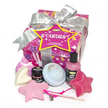 Stardust/Ballando tra le Stelle (45,95 euro). Un firmamento di prodotti per ballare tutta la notte sotto la magia delle stelle. Contiene: Splendido Splendente, olio solido glitterato, Galactus, sapone, Milli Vanilli, bagnoschiuma solido, Labbracadabra, scrub labbra, Fate Voi, gel doccia, Bagnacadabra, bagnschiuma solido, e Space Girls, ballistica.