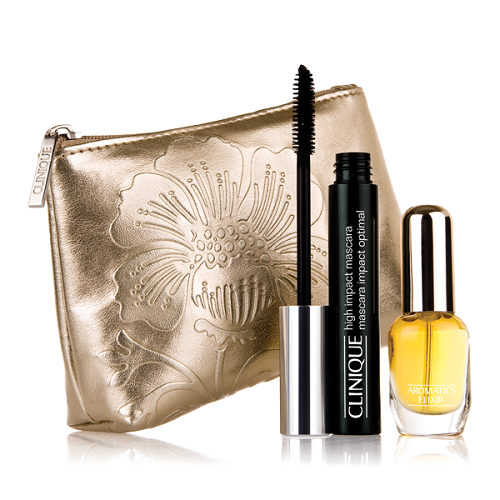 Il Set Aromatics Impact unisce invece il mascara best seller Clinique High Impact ad una taglia di Aromatics da 4ml, anch’esso best seller Clinique, il tutto in un’elegante pochette dorata.