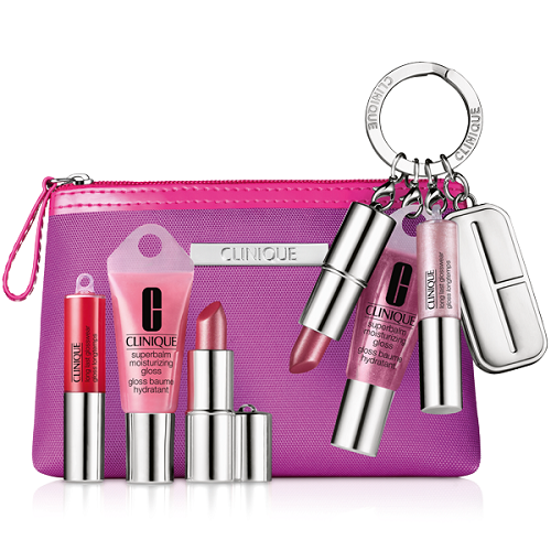 Lips To Go, più che un set è una vera chicca, tutti i prodotti infatti possono essere aggangiati ad un portachiavi ed essere portati sempre con sè. Il set contiene: Superbalm Moisturizing Gloss Lilac 4 ml, Different Lips Raspberry Glace 1.2 g, Long Last Glosswear Whisper 1 ml, Superbalm Moisturizing Gloss Grapefruit 4 ml, Different Lips Glazed Berry 1.2 g, Long Last Glosswear Juicy Apple1 ml, Portachiavi Charm ed una pochette da viaggio viola.