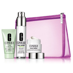 - Even Better Set: al prezzo del siero antimacchie Even Better Clinical da 30ml (69,50 euro) avrete anche la crema idratante antimacchie Even Better Skin Tone Correcting Moisturizer SPF 20 da 15ml e l’esfoliante viso 7 Day Scrub Rinse Off da 30ml, tutto in pochette.
