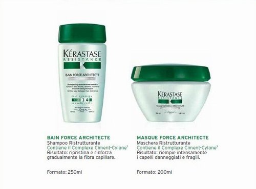 Per combattere l’erosione e il danneggiamento dei capelli lievi (tra 1 e 2) il prodotto giusto è lo shampoo Kerastase Bain de Force Rinforzante Ciment Anti-Usure, accompagnato dal Trattamento Anti-Rottura Ciment Thermique e dal Latte Ricostruttore Termo-Attivato. Per capelli molto danneggiati invece, l’ideale è lo shampoo ristrutturante Bain Force Architecte accompagnato dalla maschera ristrutturante Masque Force Architecte e dal siero ristrutturante Fiber Architecte.