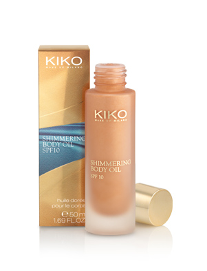 Shimmering Body Oil SPF 10: olio secco spray che uniforma l’incarnato lasciando la pelle setosa e idratata, scintillante di perle luminose. Disponibile in 2 tonalità.