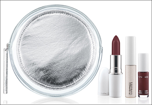 Pure Drama Iced Delights Nail & Lip Bag: kit labbra e unghie che include il Lipstick in Hang Up (permanente), il Lipglass in Frozen Lame e il Nail Lacquer in Vintage Vamp.