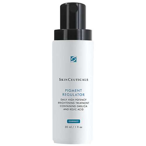 Di Skinceuticals Pigment Regulator è una crema i cui attivi garantiscono un risultato ottimale: è formulato con il 2% Acido Cogico, 2% Emblica (nota anche come uva spina indiana) e 10% Agenti Esfolianti (composto di acido glicolico e acido amminosolfonico). Questi attivi hanno proprietà schiarenti e di riduzione dell’iperpigmentazione e garantiscono la riduzione degli accumuli di melanina sulla superficie della pelle ed una migliore penetrazione degli altri trattamenti topici.