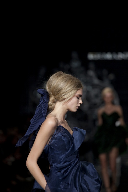 Per completare il nostro viaggio attraverso le passerelle della moda delle ultime settimane non potevamo trascurare l’appuntamento italiano più famoso: la settimana della moda milanese. Alla sfilata di Ermanno Scervino il glamour si miscela con il trendy in un connubio che è visibilissimo negli abiti ed esaltato nelle pettinature, realizzate da Franco Gobbi per Moroccanoil. Per la collezione Autunno-Inverno 2012/2013, l’hair stylist ha creato delle pettinature che esaltavano l’eleganza dei capi senza appesantirli. Semplici ma d’effetto e molto raffinate. L’ispirazione a Franco Gobbi l’ha data l’eroina del cartone animato Lady Oscar, una donna forte, sicura, androgina, che sa imporsi come punto di riferimento alla corte di Versailles. La pettinatura però è stata rivisitata “in chiave più glamour, moderna e femminile” ha dichiarato Gobbi.