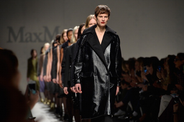 L’hairstylist Luigi Murenu ha realizzato questa acconciatura mossa per enfatizzare le caratteristiche della collezione di Max Mara, ispirata allo stile metropolitano e con molti accenni inglesi e scozzesi. Per creare l’effetto “mistake”, come se la pettinatura fosse venuta male, i capelli sono stati prima asciugati e poi arricciati con un arricciacapelli per creare delle onde leggerissime, appena accennate. Con la mousse Bouffant di Kerastase è stato dato volume alla pettinatura mentre lo Spray à Porter applicato sulle punte ha dato ai capelli un aspetto opaco, vissuto. Le punte infine ono state lisciate con la piastra per creare il contrasto con la morbidezza della parte superiore e trattate con Elixir Ultime per dare morbidezza e lucentezza. Le punte dei capelli finiscono dentro il cappotto, perchè anche il look complessivo appaia trascurato.