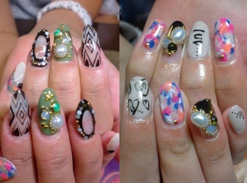Colori nude, rossi vinaccia e fantasie estrose: le nail art più belle, e stravaganti, si adattano alle unghie ricostruite e a quelle più corte e ben limate. Sulla superficie sono applicati glitter e pietre preziose per un effetto luminoso e unico, perfetto per una serata elegante e scatenata.