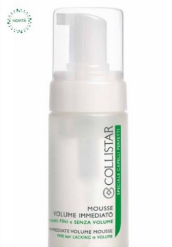 Per capelli fini e senza volume, Collistar ha pensato ad un’altra novità dell’autunno 2012: la Mousse Volume Immediato, ideata per capelli sottili, senza tono, spenti e che non tengono la piega. Si tratta di un vero e proprio amplificatore di volume: la mousse soffice ma corposa dona immediatamente consistenza ai capelli fini. Utilizzata insieme allo shampoo e alla maschera diventa il trattamento ideale per rendere i capelli più forti e vitali, grazie alla formula a base di estratto di ginseng, oligoelementi e proteine del grano e della seta. Usata prima dell’asciugatura, protegge dal calore del phon, conferisce lucentezza, facilita lo styling e lo fa durare più a lungo. È ideale anche