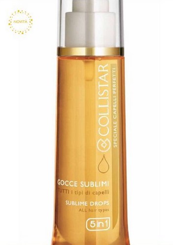 Ogni giorno i nostri capelli devono combattere contro tutti gli stress provenienti dal mondo esterno: sbalzi di temperatura e umidità, vento e sole, inquinamento. Per non rischiare di perdere morbidezza e lucentezza, la tradizione insegna che può essere utile un impacco d’olio, perchè è nutriente e crea un film protettivo che difende i capelli dalle aggressioni esterne. Collistar si è ispirata alle cure tradizionali nella creazione di un olio che racchiude principi attivi di origine 100% vegetale. Si chiama Gocce Sublimi, ed è un olio avvolgente che contiene 5 pregiati, oli vegetali e vitamina E, capace di donare brillantezza, protezione e nutrimento alla capigliatura. Versatile e multifunzione, questo elisir concentrato consente 5 diversi utilizzi, donando 5 diversi risultati.