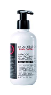 Tutte le materie prime vegetali e gli oli essenziali sono miscelati secondo le ricette originali Aldo Coppola, un patrimonio unico di formule con azioni specifiche lenitive, rivitalizzanti, purificanti e deforforanti intesamente funzionali. Nel mondo Aldo Coppola la passione per le materie prime naturali caratterizza molti trattamenti professionali per cute e capelli, e anche i principi dell’aromaterapia sono applicati alla cosmetica per capelli per valorizzare i servizi eseguiti in salone dagli stylist. Ogni elemento naturale ha le sue virtù cosmetiche e la linea Oli Essenziali di Aldo Coppola le sfrutta per avere risultati purificanti, emollienti, rivitalizzanti ai capelli che in questo modo avranno più corpo, luce e morbidezza, più resistenza agli agenti atmosferici ed esterni, più italità e bellezza.