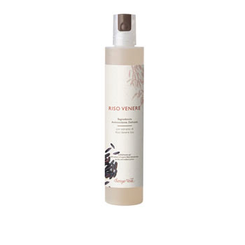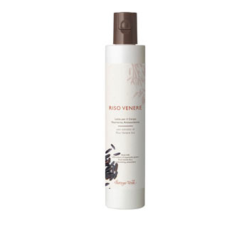 Per il corpo un trattamento davvero completo: lo Scrub Corpo esfoliante ed illuminante dalla texture cremosa arricchita con Burro di Karitè bio, Miele, Olio di Crusca di Riso, Estratto acquoso di Riso Venere bio ed esfoliante di Riso, il Bagnodoccia estremamente delicato e che durante la detersione sprigiona le proprietà antiossidanti del Riso Venere, e il Latte Corpo, dalla texture fluida, ricca e corposa arricchita con estratto di Riso Venere, emulsionante da lipoproteine di Riso, Gamma Orizanolo, Burro di Karitè bio, Olio di Crusca di Riso, Olio di Jojoba bio, Amido di Riso e Miele.