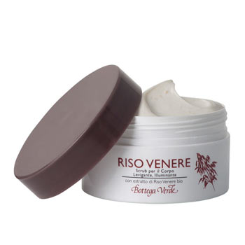 Per il corpo un trattamento davvero completo: lo Scrub Corpo esfoliante ed illuminante dalla texture cremosa arricchita con Burro di Karitè bio, Miele, Olio di Crusca di Riso, Estratto acquoso di Riso Venere bio ed esfoliante di Riso, il Bagnodoccia estremamente delicato e che durante la detersione sprigiona le proprietà antiossidanti del Riso Venere, e il Latte Corpo, dalla texture fluida, ricca e corposa arricchita con estratto di Riso Venere, emulsionante da lipoproteine di Riso, Gamma Orizanolo, Burro di Karitè bio, Olio di Crusca di Riso, Olio di Jojoba bio, Amido di Riso e Miele.