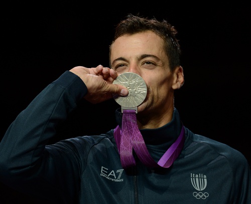 Il compagno di squadra Diego Occhiuzzi, medaglia d’argento della sciabola, ha invece mostrato un gusto meno appariscente con un taglio di capelli molto corto, con un ciuffo leggermente più lungo e pettinato in alto con il gel. La pettinatura dona molto al viso un po’ scarnito del campione ma non riesce a mimetizzare adeguatamente la leggera stempiatura ai lati della fronte.