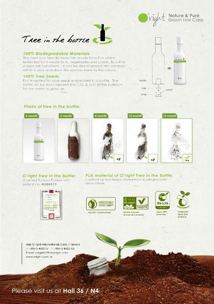 L’economia verde i prodotti eco-compatibili sono il futuro della cosmesi. Dalla sua fondazione, O’Right si dedica alla creazione di linee ecologiche di prodotti per capelli ed ha sviluppato la prima bottiglia di shampoo che può far crescere un albero dopo esser stata sotterrata nel terreno. Il meccanismo è semplice: voi acquistate una bottiglia di shampoo O’Right, scegliendo tra i prodotti più adatti al vostro tipo di capelli, quando la bottiglia sarà vuota sotterratela insieme a un seme. Il risultato sarà un bell’alberello!