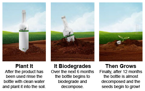 La “Bottiglia del Seme” O’Right biodegradabile è certificata dall’EU, USA, Germania e Giappone. Ha un alta tolleranza al calore ed è molto tenace. L’utilizzo è semplicissimo e se date un’occhiata alla nostra gallery potrete vedere come fare per piantare la vostra bottiglia di shampoo e ottenere una pianta. La crescita del seme dipende sempre dalle temperature, dall’umidità e dal livello di sostanze nutritive del terreno, ma tentare non nuoce!