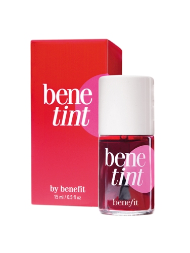 Il più famoso e utilizzato dei tre blush, che si presentano nel classico flaconcino con pennellino incorporato al tappo, è Benetint: la tonalità è un rosa fragola molto carico ma, una volta steso, si trasforma in un rossore diffuso molto sensuale e naturale. Si può utilizzare anche come rossetto o sopra il lipstick, per enfatizzarlo. La nuance si adatta perfettamente a tutte le carnagioni. Un consiglio: le prime volte stendetene pochissimo: essendo il colore molto carico e a lunghissima tenuta si rischia di sbagliare e di far fatica a rimediare!