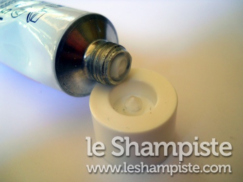 La confezione è in tubetto di alluminio, forse scomodo alle prime applicazioni perchè la pressione fa uscire più prodotto del necessario, ma è senza dubbio il packaging che preferisco in quanto mi permette di capire quando il prodotto sta finendo o meno (cosa non così ovvia per le ormai diffuse confezioni in plastica).