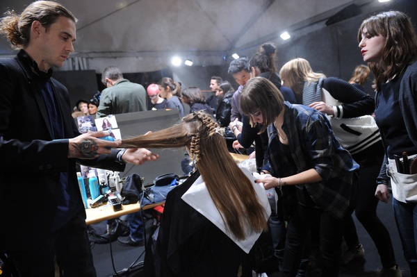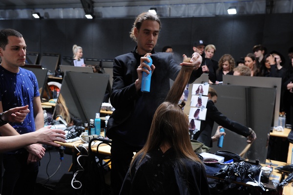 Le pettinature, più lisce e rigorose in alto, finivano con i capelli che declinavano in morbide onde fluttuanti. Per realizzare il look sono stati utilizzati prodotti per donare struttura e sostegno all’acconciatura e allo stesso tempo proteggere i capelli che vengono trattati con il phon o la piastra.