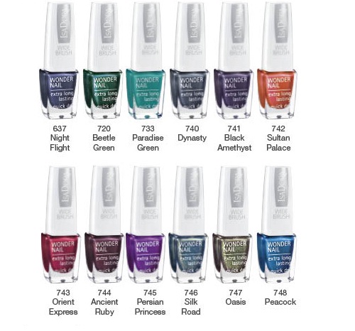 Come noterete dalla foto delle dodici tonalità di colore pensate da Isadora per la stagione autunnale 2012, le nuance più in voga sono le sfumature del blu, del verde e del viola, un mix di colori caldi e freddi proposti in un finishing brillante e metal da sfoggiare per tutta la stagione autunnale e invernale.