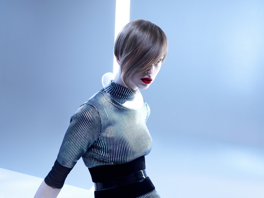 Fantachic è una tendenza che riprende gli elementi classici della fantascienza cinematografica e il fantasy entra nel quotidiano suggerendo linee pulite e asciutte, colori neutri, soluzioni dal taglio preciso e dallo styling costruito. Per l’uomo, il taglio si allunga e sul delicato biondo medio brillano sottili ciocche chiare. Protagonista assoluto è il taglio corto, dal perimetro geometrico e dal volume liscio, per una donna impegnata e sicura di sè, che ama le cose essenziali.