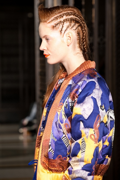 Sulle passerelle di Giles e Tabernacle Twins è apparsa la treccia, vero leit motiv delle acconciature degli ultimi due anni, ma in una versione molto più voluminosa rispetto a quella classica. Le trecce di Giles, ispirate a Braveheart, sono annodate fino a creare l’effetto arruffato. Per Tabernacle Twins invece i capelli sono stati spostati tutti da un lato e acconciati in una serie di piccole trecce che partono dalle orecchie e occupano tutto un lato della testa, donando un effetto molto simile all’under cut.