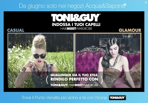 Già da qualche giorno, i negozi di prodotti per il corpo e la casa “Acqua e sapone” hanno una grande novità per tutte le appassionate di hairstyle che non sanno rinunciare ai prodotti per capelli professionali. In tutti i negozi contrassegnati con il marchio “Toni&Guy” (li potete consultare facendo una semplice ricerca sul sito di Acqua e Sapone) saranno disponibili i prodotti professionali Toni&Guy. HAIRMEETWARDROBE, ovvero “indossa i tuoi capelli”, è una gamma di prodotti che si ispirano ai look delle passerelle per reinventare ogni giorno uno stile diverso, che come l’abbigliamento possa aiutarci ad esprimere la nostra personalità. Navigando sul sito web potrete dare uno sguardo alle novità e soprattutto seguire i video tutorial che vi spiegheranno come creare pettinature che si adattano al vostro stile e al vostro guardaroba. Ma le novità non finiscono qui!