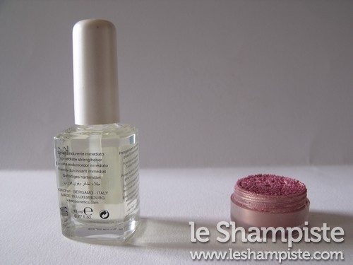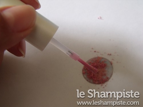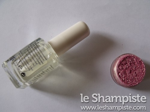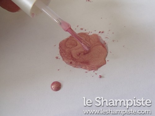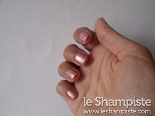Nota Bene: Il pigmento che ho usato era un vecchissimo ombretto cangiante ormai fuori produzione sui toni del rosa e dell’oro.